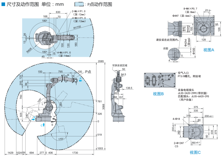 尺寸及动作范围