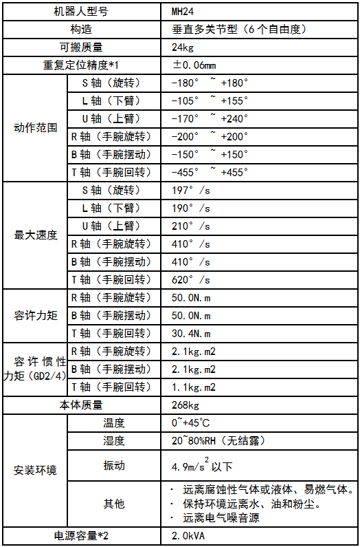 ► 负载重量为24kg的新开发机器人,机器人新成员。
