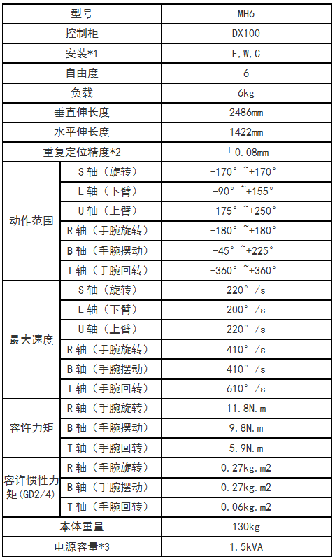 *1:小型机种:负载在20kg以下的MOTOMAN机器人