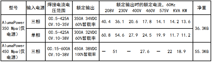 ► AlumaPower 350 MPa或450MPa 焊接电源
