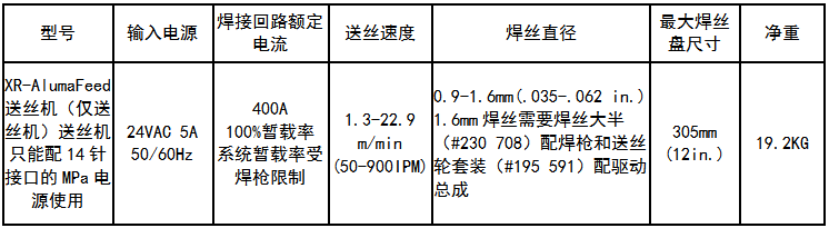 XR-AlumaFeedTM送丝机与AlumaPowerTM350MPa或450MPa电源组成的一元化系统革命性的简化并改善MIG和脉冲MIG的铝焊应用。